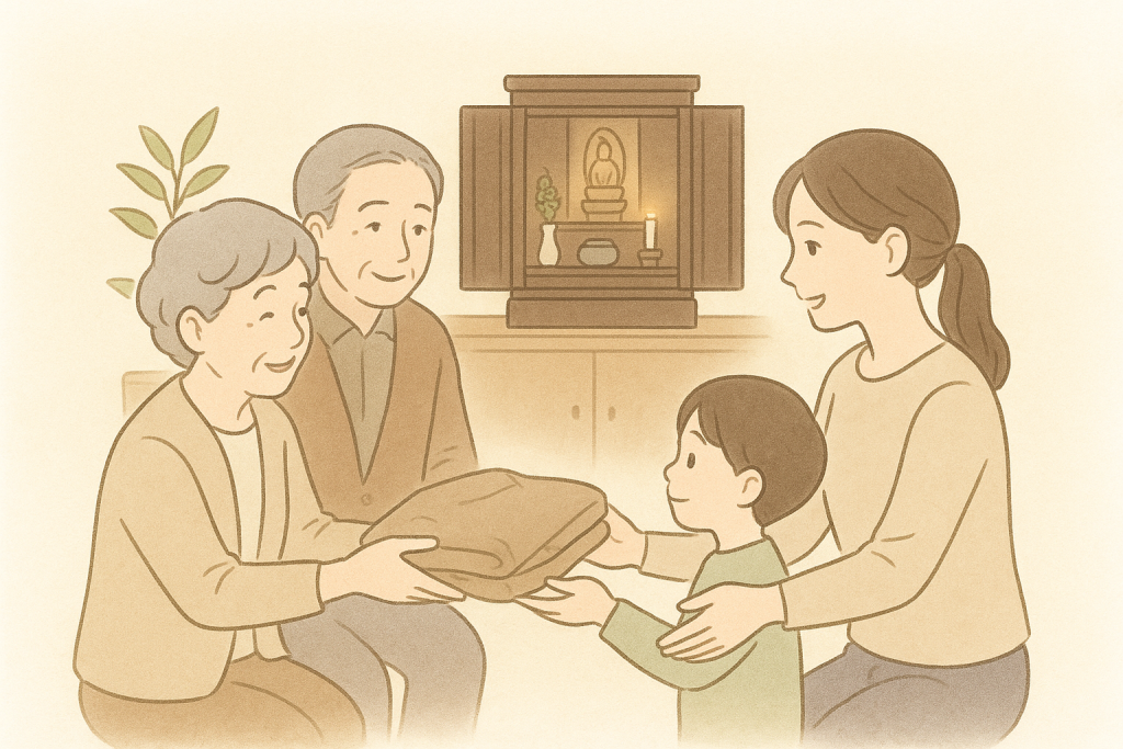 「形見分け」は、故人様の大切な品を親しい方へ分けること。時計や衣服、愛用していた品を手にしたとき、受け取った方たちの中で故人様との繋がりが続いていきます。