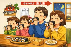 近年定着した風習が 恵方巻 です。