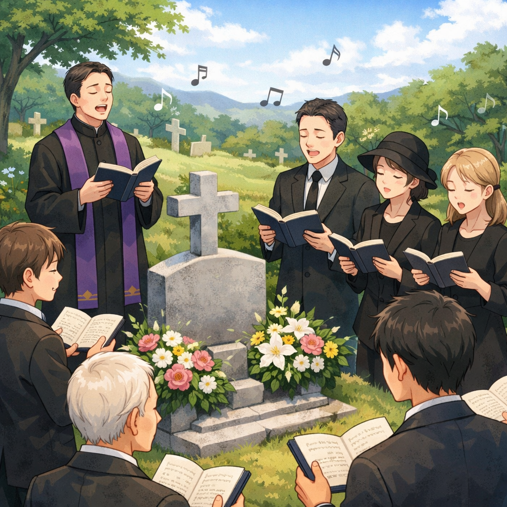 家族のみで教会もしくは墓前で執り行うことが多いようです。